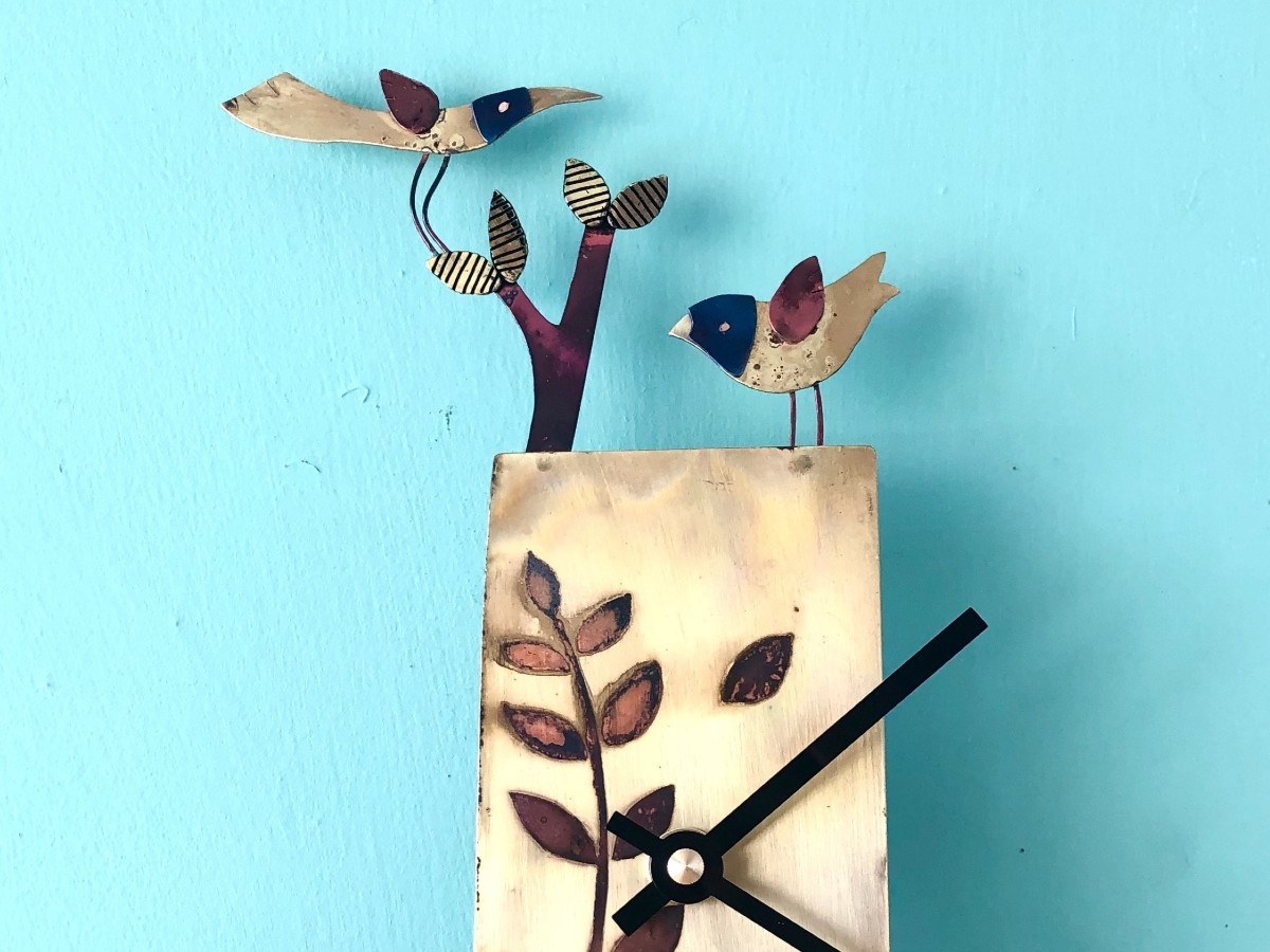 I have a small birds clock featuring 2 little birds sitting on a branch. I always loved it but for various reasons I am discontinuing it as that small design, there will only be two more made, but here it is in a new, taller, bigger version! The birds are bigger too.